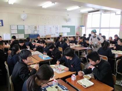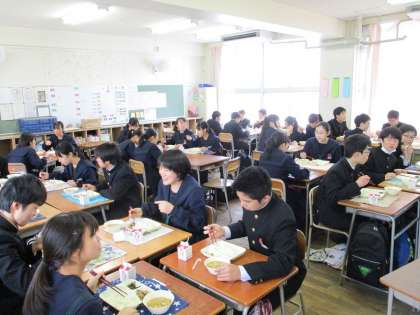 同じく3年4組の最後の給食の様子です。どのクラスもしっかり給食を食べて、教室中が笑顔でいっぱいです。