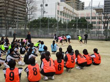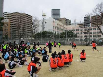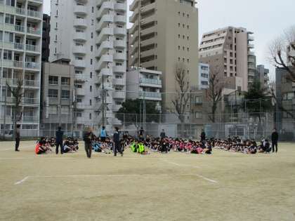 2月28日(金)5限目、公園グラウンドで、クラス対抗で全員リレーに取り組みました。生徒も先生も走る人を応援し、グラウウド内に声援が飛び交います。