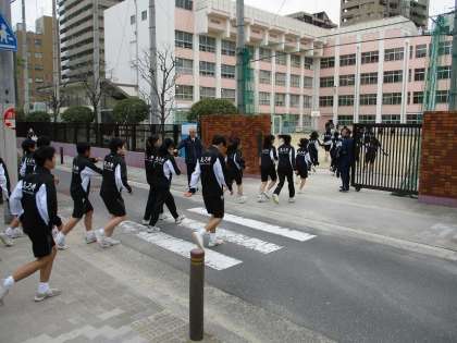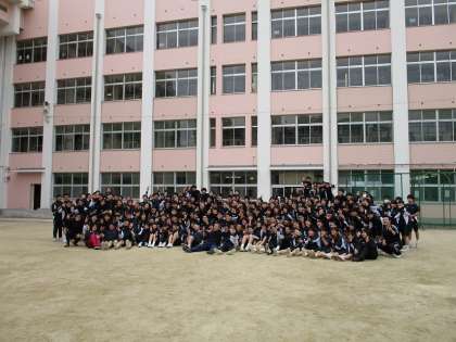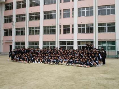 リレーが終わり、学校のグラウンドに戻って、3年生の学年集合写真を撮影しました。