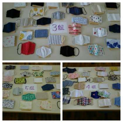 臨時休校中の3年生の家庭科の課題は「マスクの製作」でした。感染防止の紙マスクが手に入らないなら、洗って使える布マスク作りましょう!ということでしたが、材料のガーゼやマスクゴムの入手さえ難しい状況の中、様々な工夫とリサイクルでとても素敵なマスクを作ってきてくれました。学校再開の時には、オリジナルマスクを着けたみんなと会えるかな。