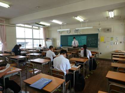 5月18日(月)〜22日(金)に各学年2回の登校日を実施しました。クラスを分散しての授業ガイダンスとともに1年生は、入学式後初めてクラスで集まり、学級活動を行いました。2年生は、5月25日(月)からの週にクラスで集まり、学級活動を行います。3年生は、クラス全員で集まっての学級活動の実施はありませんが2日間の授業実施びを予定しています。