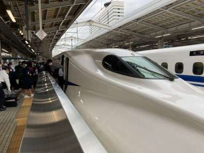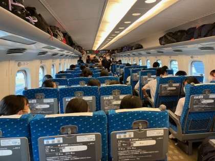 出発式を終えて、みんな元気に新幹線へ乗り込みました。いざ広島へ!