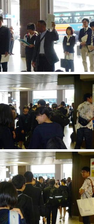 7:30集合の新大阪駅1F団体待合室に誰一人遅れることなく集合し、出発式を行いました。