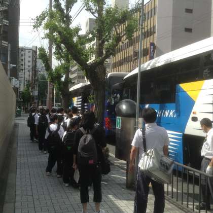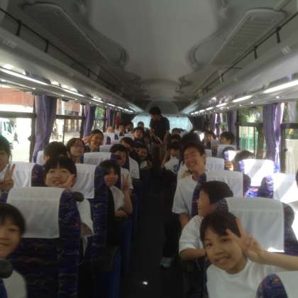 5月22日・23日、1年生は貝塚の少年自然の家へ一泊移住に行きます。生徒代表から取り組みの目的として、自然に親しむ、集団規律を学ぶ、仲間との絆を深めましょうと宣言がありました。教頭先生からは、2日間の学びを通して大きく成長しましょうとお話がりました。大きなテルテル坊主のおかげ?で天気にも恵まれました。本日は順調にスタートしました。