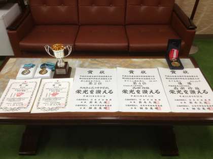8月26・28日に行われた「第36回全国JOCジュニアオリンピック夏季水泳競技大会」の1M飛板飛込(男子12−13)で1位、高飛込(男子12−13)では2位に入賞しています。さらに飛込男子において最優秀選手に選ばれ栄誉を讃えるカップを授与しました。今後の活躍が楽しみです。みなさんの応援よろしくお願いします。