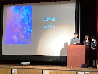 本日6限目に部活動紹介が行われ仮入部期間が始まりました。正式な部活動編成は4月16日の金曜日です。昨年・一昨年と新型コロナ感染症対策としてビデオ映像やオンラインでの紹介しかできなかった部活動紹介。本年度は体育館に1年生を招いて実施することができました。各部工夫を凝らした紹介に感嘆の拍手や驚きの声が上がりました。演奏あり、実演あり、劇あり、中にはクイズ形式やコント風にアレンジした紹介に大爆笑の一場面もありました。
