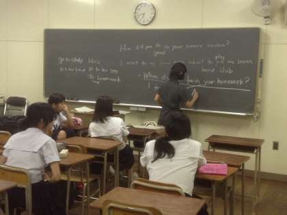 本校では、地域ボランティアの支援を得て「英語夜間講座」を開催しています。対象者は2・3年生の講座受講希望者。前期は5月下旬〜10月中旬の学校課業日の毎週水曜日(18:30〜20:20)。講師の先生は海外勤務経験者で英語だけでなく海外事情にも詳しく、英語を通してコミュニケーション力の育成にも取り組んでいます。