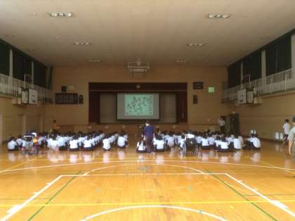 9月5日、2年生の朝の学年集会では、10月4日に開催する文化祭に向けて、学年の取組の説明がありました。テーマは「夢」!プロジェクターでは、音楽とともに勇気づけられる言葉が映し出されました。その一部をご紹介しましょう。『勝つか負けるじゃなくて、やるかやらないかなんだよね』『どんな夢でもかなえる魔法は、あきらめないこと』!まだまだ、素晴らしい言葉が続きます。皆さん、文化祭の舞台発表を楽しみにしていてください。