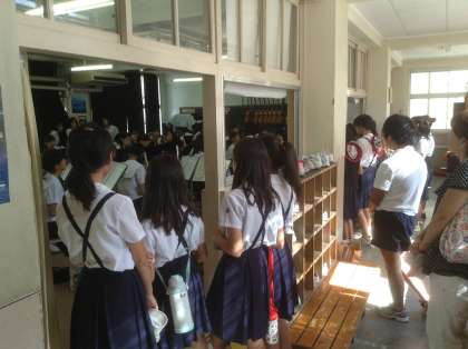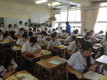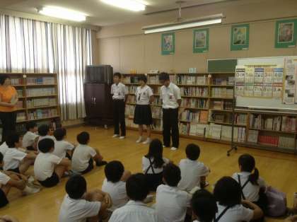 9月5日、本日は午後から西船場、明治小学校の6年生が中学校見学に来ました。内容は授業を参観した後に部活動を見学しました。また、本校の生徒会役員3名から、中学校生活について詳しく説明がありました。説明後には「宿題は多いですか」「どれだけ教科書があるんですか」などの質問があり、生徒会が丁寧に答えていました。見学に来た児童の感想は「勉強は難しかったけれど興味はある」「生徒会にチャレンジしたい」「やっぱり楽しみは部活動」でした。最後に、引率していただきました小学校の先生方ありがとうございました。これからも小中連携をよろしくお願いします。