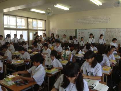 校長先生からは、中学校への準備として読書をたくさんしましょう、夢をしっかり持ちましょうというお話がありました。さらに、2012年ロンドンオリンピックの卓球女子団体で銀メダルを獲得した石川佳純選手の小学校6年時の「夢」という作文が紹介されました。大きな「夢」を持って花中に入学してきてください。引率していただいた小学校の先生方ありがとうございました。これからも小中連携をよろしくお願いします。