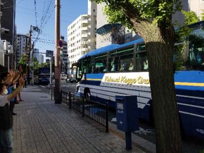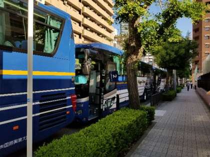 午前7時00分、当初の予定より少し遅れましたが、バスに乗車して、学校を出発しました。