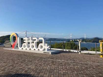 予定通り、17時30分にしまなみ海道の来島(くるしま)海峡サービスエリアに到着して、休憩をとりました。この後、クラスごとに学級写真を撮影し、再びバスに乗車して、道後プリンスホテルに向かいます。