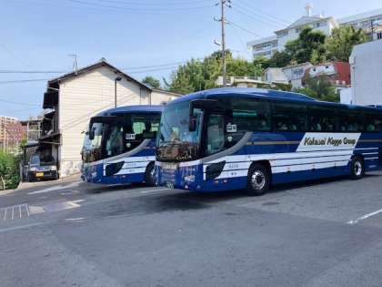 ラベルに書く俳句作りから、その他のグループはバスでそれぞれの活動場所に出発しました。