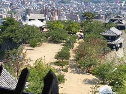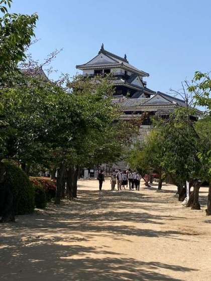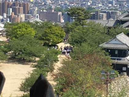 松山市内班別行動で松山城とハイカラ通り周辺を散策しています。