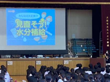 テスト終了後、主に運動部の皆さんを対象として熱中症対策(食育セミナー)の講習会を開催しました。外部講師をお招きして体の仕組みや水分調整が必要なこと等々、熱中症にかからないように予防策を勉強しました。これからどんどん暑くなってきます。屋外屋内を問わず、本日の講習を生かして頑張りましょう。
