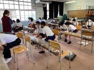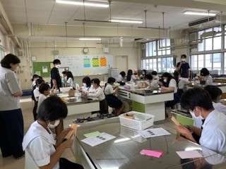 本日は、校区3小学校の6年生を花乃井中学校に招待し授業体験と部活動紹介を行いました。来年入学予定の皆さんは77期生となります。暑さも少し和らぎ、心配していた雨も何とか持ちこたえてくれる中で、大歓迎することができました。中学生の役員の皆さんも各教室への誘導から始まり、授業中は教員のお手伝いとして、児童の支援によく動いてくれました。本当にありがとうございました。小学生の皆さんも喜んでくれたと思います。