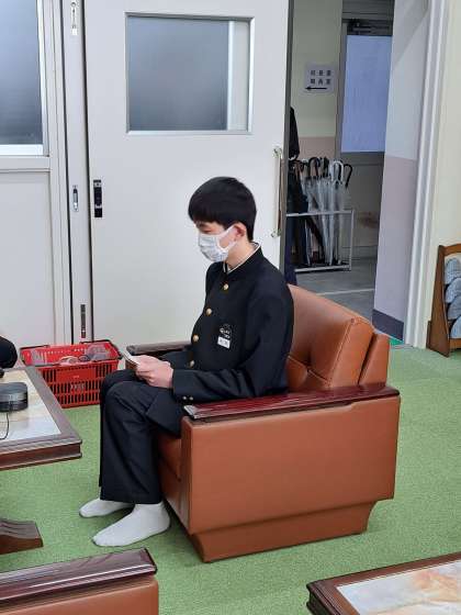 オンラインで全校集会を実施しました。(校長室からの配信の様子です)