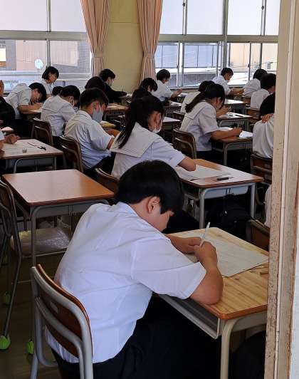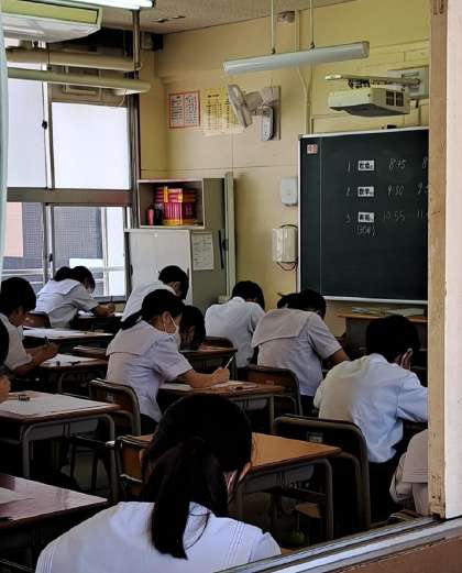 2時限は全学年数学のテストでした。各クラスの様子を見させていただいた際の様子を一部ですがお伝えします。