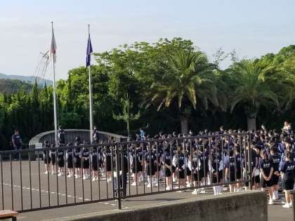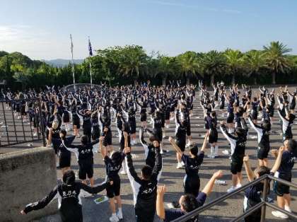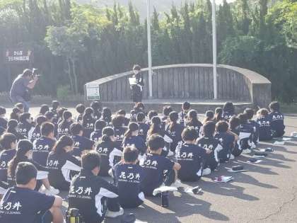 2日目がスタートしました。「朝のつどい」の様子です。集合したときは少し眠たそうな感じでしたが、ラジオ体操で頭と体もシャキッとなりました。