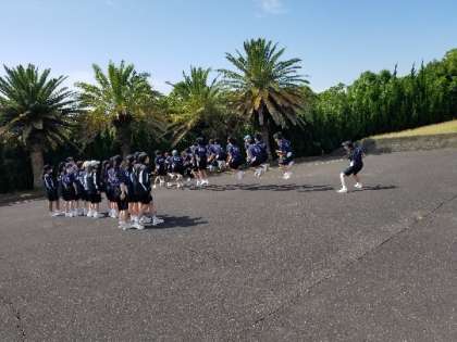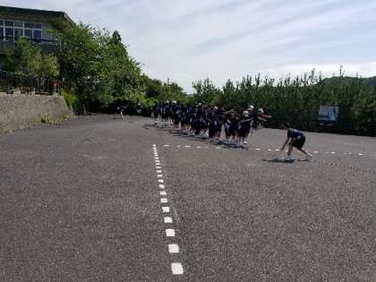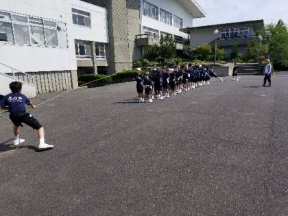 「アドベンチャーラリー」の前に、つどいの広場で体育大会の学年種目「大縄跳び」の練習をしています。