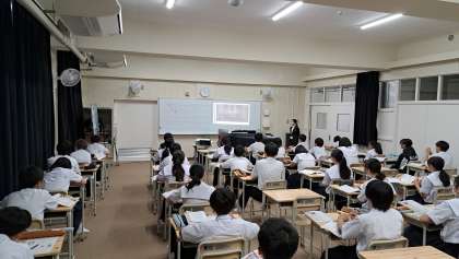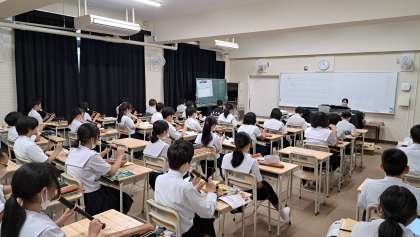どんよりとした空、曇のち雨の天気ですが、そんな雰囲気に流されることなく、生徒たちはいつも通り頑張っています。校内の様子をお伝えします。1年生・音楽の授業の様子です。