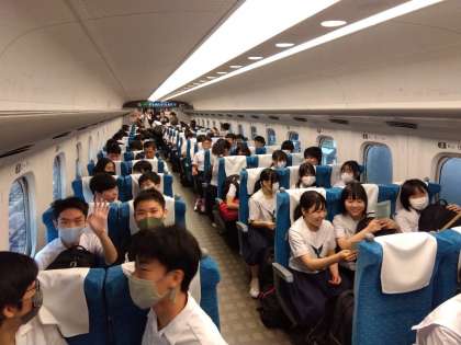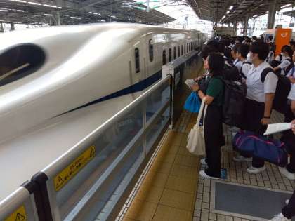 新幹線発車!練習の成果を発揮し、スムーズな乗車に成功。九州に向けて出発です。