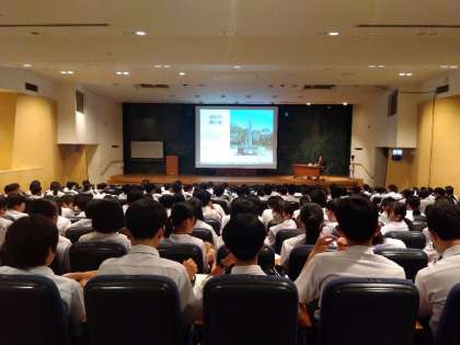 長崎原爆資料館のホールで、語り部の方から被爆体験のお話しを聞きました。対面での講話は、生徒にとって貴重な体験となりました。