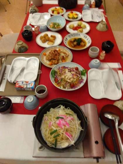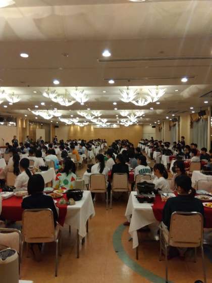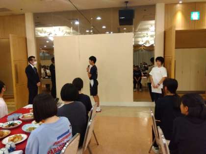 食事会場に全員が集まった時点で入館式を行いました。ホテルのスタッフの皆さん、二泊三日お世話になります。