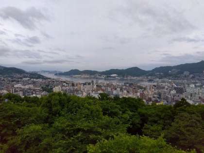 朝の風頭公園です。坂本龍馬像の見つめる長崎の街並みです。