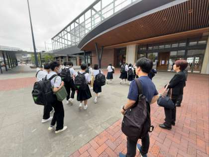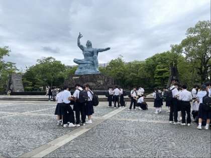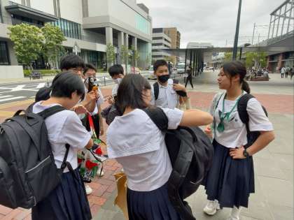 活動班別フィールドワークが始まっています。写真は平和公園とJR長崎駅を出発する様子です。