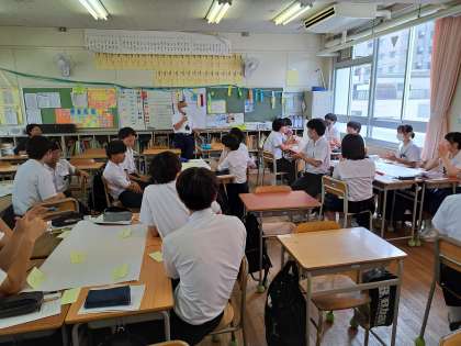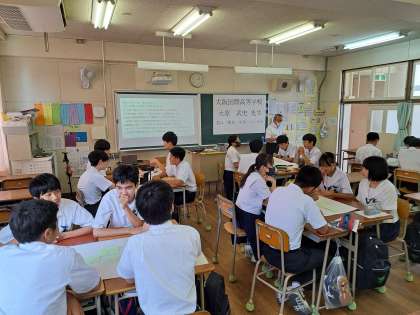 7月4日の5・6時限に高等学校授業体験を実施しました。大阪国際高等学校の先生による「君は『探求』を知っているか」の様子です。