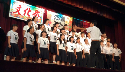 松田先生率いる3年3組は、個性的で楽しいクラスです。普段は明るく授業に集中し、行事は真剣に取り組みます。クラス全員が一丸となって、1回1回を大切に一生懸命練習を行いました。休み時間を利用して改善点を全員で話し合うなど、クラス内がとても良い雰囲気でした。課題曲の「COSMOS」は心を一つにして美しくのびやかに、自由曲の「HEIWAの鐘」は歌詞に込められた反戦の思いにふれながら誠心誠意、歌います。