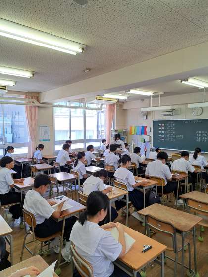 3枚目は、体育館です。2年生が職場体験(10月実施)の説明を受けていました。職場訪問(事前打合せ)と職場体験(本番)までに、職業人として大切にすることは何かを考えてみてください。