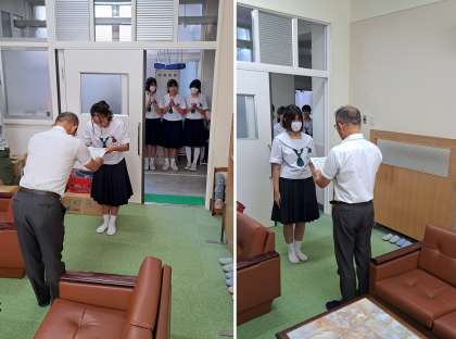本日の全校集会では、水泳部への表彰状の伝達、生徒会新役員の認証式を行いました。