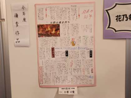 中澤さんの作品は、『戦国新聞 〜信長の50年〜』というタイトルの壁新聞で、社会科の教員や専門委員の方々から絶賛されていました。