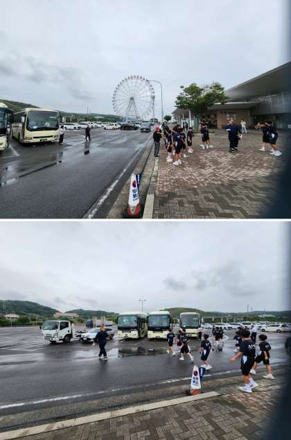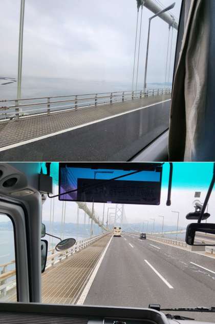 明石海峡大橋を通過し、予定通り10時に淡路サービスエリアに到着しました。現地は小雨です。