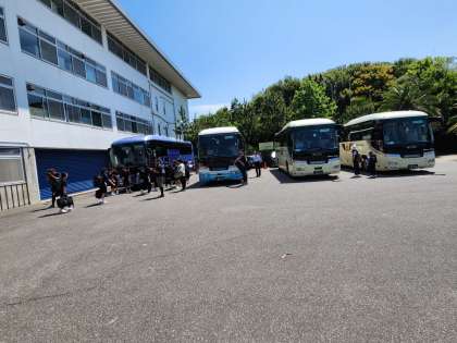 予定より約10分遅く13時50分頃、国立淡路青少年交流の家を出発しました。