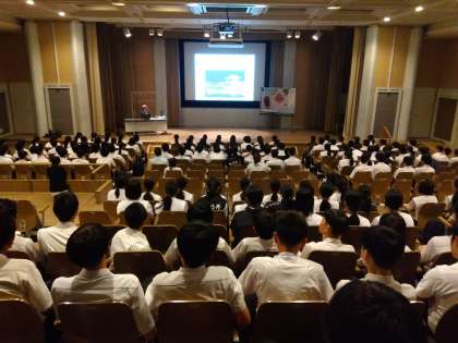 自身の貴重な体験を語っていただき、最後には「大人になったら、選挙で戦争をしない為政者を選び、平和をつくる人になってください。」と、メッセージをいただきました。