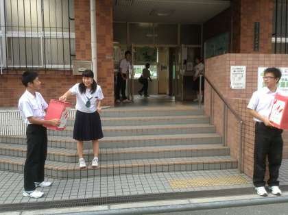 10月8日から10日まで、第67回共同募金(赤い羽根)運動を生徒会主催で実施しました。赤い羽根の募金活動は、町の人のやさしい気持ちを集める活動です。あなたのやさしさが、あなたの声かけが、あなたの行動が、きっと、町を変えていく初めの一歩となるはずです。花中生のみなさん、ご協力ありがとうございました。