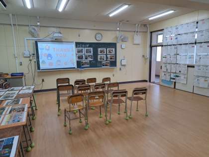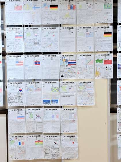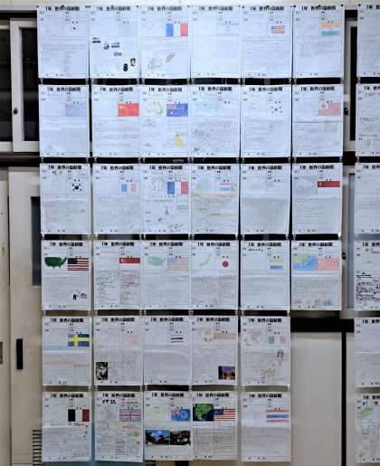 西館4階43教室は、1年社会・夏休み課題〜国調べ〜です。