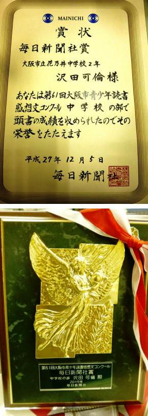 ☆第61回大阪市青少年読書感想文コンクール 毎日新聞社賞受賞☆
