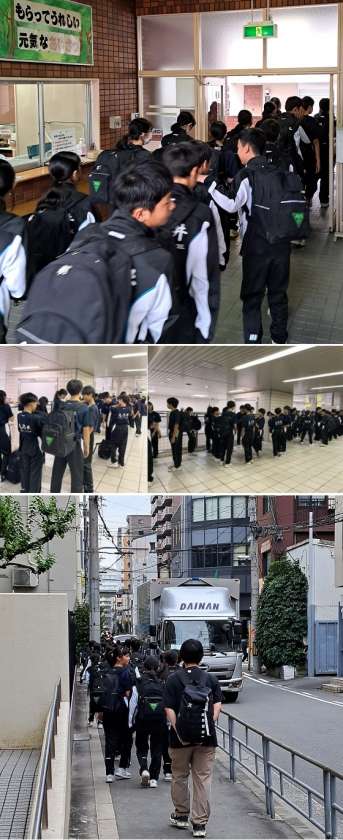 予定よりも少し早く学校を出発しました(先発A班・後発B班にわかれて移動します)。