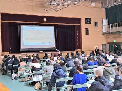 令和7年度新入生の保護者のみなさまを対象とした説明会を開催しました。校長のあいさつの後、本校の教育課程、標準服の採寸・物品販売、学校での生活(私たちの約束)、学校徴収金と就学援助制度、PTA活動、学校給食について、各担当より説明させていただきました。