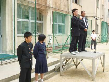 10月18日、本日は5限目に前期終業式が行われました。まず最初に、校内読書感想文コンクールの奨励賞9名、優秀賞3名が表彰されました。続いて、浅田校長先生からは、前期をしっかり振り返るとともに生徒の皆さんに言い続けてきた「常に考える」「失敗を恐れずチャレンジする勇気を持つ」ことの大切さの話がありました。また、最後には3年生の生徒会役員の任期が終了するので、坂井会長、平井副会長、西村副会長から最後のメッセージが全校生徒に贈られました。3名のメッセージのキーワードです。「一つ一つの行動には意味がある」「一つの言葉にも優しさがある」「人は誰かのためにがんばれる」