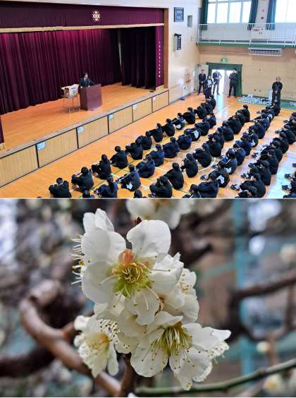 生徒指導主事からは、1年間の振り返り、休業期間中の過ごし方について講話がありました。「春休みのしおり」を配付しております。ご家庭でもご確認いただきますよう、お願いいたします。