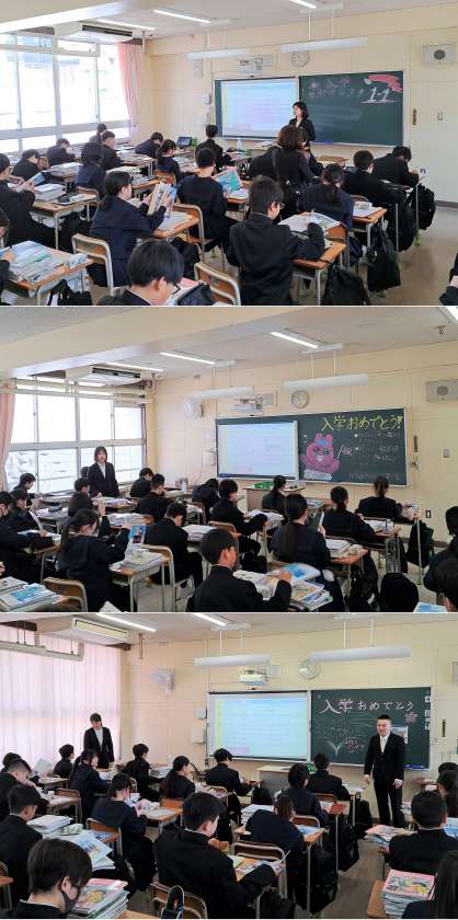 入学式後、各教室での学級活動の様子です。教科書や配付物の確認をしています。
