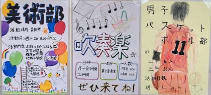1年教室前廊下に貼られている部活動のポスターを紹介します。