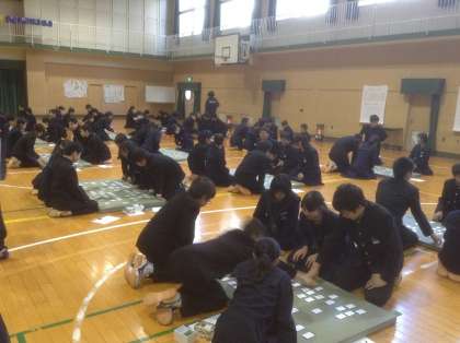 1月26日の5、6限を活用して一年生の百人一首大会が開催されました。最初は緊張しているように見えましたが、時間が経つにつれて場の雰囲気にも慣れ、「ハイ!」と札を取る声があちらこちらから聞こえてきました。優勝クラスは5組、準優勝クラスは2組でした。おめでとうございます。また、札を一番多く取った百人一首キング、クイーンは「ほっとニュース」でお知らせします。楽しみにしておいてください。