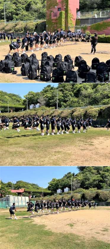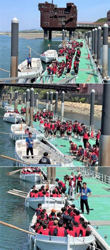 カッター乗り込みと「イッセーノーレ」の掛け声とともに大縄跳びの様子です。