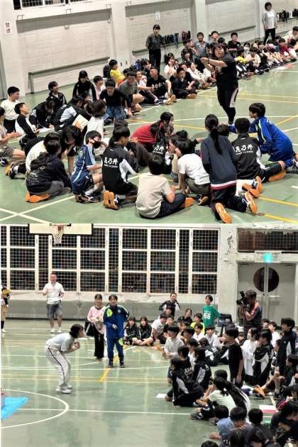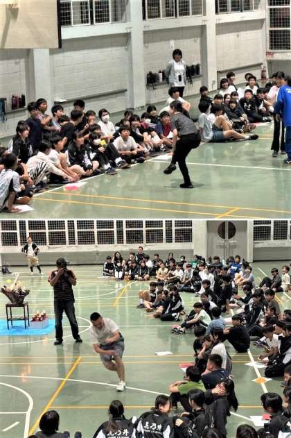 セレモニーの後は、レクリエーションです。火を囲みながら、大いに盛り上がっています。担任の先生からのジェスチャーゲームの様子です。